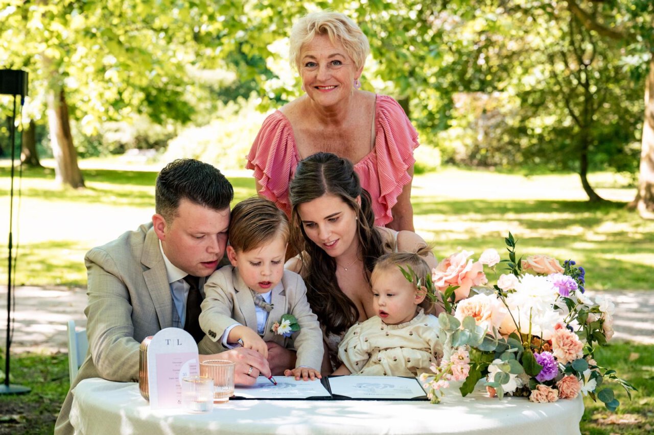 Een onvergetelijke dag voor ons! Mede dankzij de prachtige ceremonie, die door Georgette werd verzorgd. Wat een mooi en fijn mens. We kijken terug op een aantal hele fijne, maar vooral gezellige gesprekken samen. Ook onze kinderen werden volop betrokken in de voorbereidingen, maar ook op de dag zelf hadden zij een belangrijke rol. Ze mochten een kinderakte ondertekenen. Lieve Georgette, bedankt voor alles!